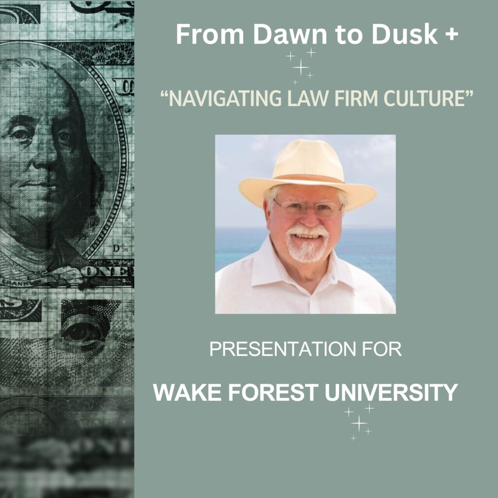 In a series of additional podcasts, From Dawn to Dusk +, Doug shares some of his own strategies with live audiences. In a recent visit to Wake Forest University, he discusses how important business strategies are to growing your law practice. First step is learn how to reprogram your brain, and how to do the same for potential clients, so they will not only like you, they will want to hire you. Also, in this episode, you will hear about how every lawyer reaches a “use-by-date” or a time to move on from their firm or business. Learn how to plan for your next act so you can leave on your terms.